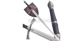 Magnifique réplique de l'épée Anduril ou "la flamme de l'ouest", portée par le roi Elessar dans la trilogie "Le seigneur des anneaux". La lame non affutée est en acier stainless steel 440. Lame gravée d'écriture elfique au niveau de la gorge. Superbe Epée Aragorn, Epee le Seigneur des Anneaux. Longueur totale de l'épée dans son fourreau : 132cm Longueur...