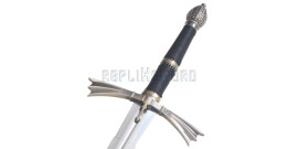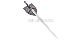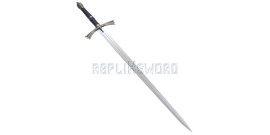 Magnifique reproduction de l' épée "Orcrist" de Thorin tiré du film "Le Hobbit" Lame en acier Stainless non affûtée gravée d'écritures elfiques.Garde en acier avec gravure.Longueur total : 100cm.Longueur de la lame : 75cmLivré avec son support mural en en bois richement décoré (37cm x 26cm)Magnifique piece de collection.