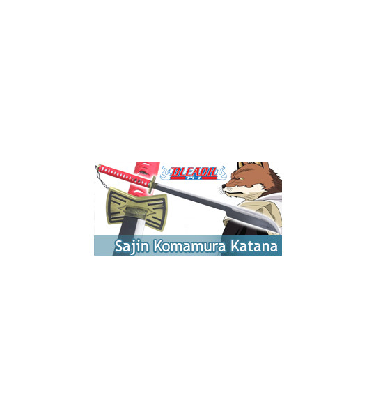 Magnifique reproduction de l'épée de Tengen Komamura Sajin. La lame est en acier 440 stainless steel noire. Garde en métal finement décoré.Poignée imitation peau de raie recouvert d'une tresse en coton rouge. Longueur de la lame : 66cm Longueur totale : 95cmUne exclusivité RepliKsword.