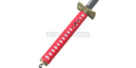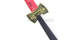 Superbe reproduction du katana de Zoro Roronoa, l'épée Shusui dite "L'eau Automnale" du Manga "One Piece".Zoro porte le sabre a sa main droite.Sa lame en acier inoxydable 440 stainless steel est noire avec motif rouge.Lame non tranchante.Fourreau en bois noir avec motif sur tout le long. Ornement en acier a chaque extremité du fourreau. Garde en acier....