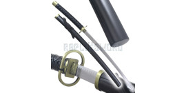 Magnifique reproduction du dernier Katana et poignard bankai inspirée de l'univers d'Ichigo. (Epée + Poignard)Les lame pré-affutée en acier stainless steel noir non tranchante.Les manches en acier sont entourés d'un tsuka maki (laçage de tresse) noir.Longueur total Poignard : 59cmLongueur totale Epée : 103cmCe Bankai est la derniere version en date.Une...
