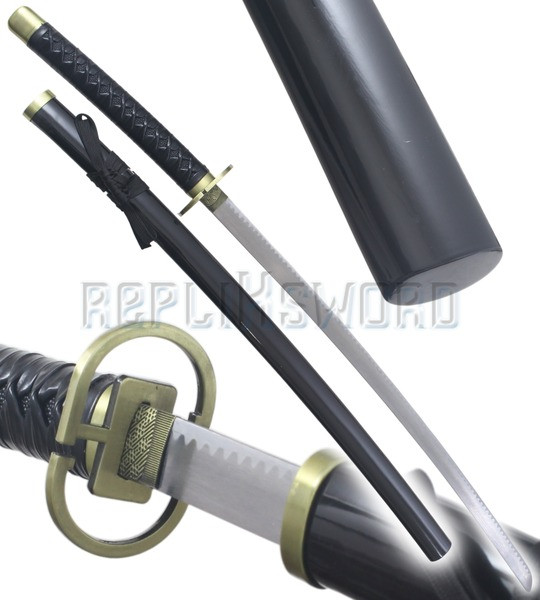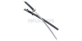 Superbe reproduction du katana de Zoro Roronoa, l'épée Shusui dite "L'eau Automnale" du Manga "One Piece".Zoro porte le sabre a sa main droite.Sa lame en acier inoxydable 440 stainless steel est noire avec motif rouge.Lame non tranchante.Fourreau en bois noir avec motif sur tout le long. Ornement en acier a chaque extremité du fourreau. Garde en acier....