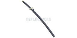 Magnifique reproduction de « l'epee sans nom », le katana de Kenpachi.La lame en acier stainless steel 440, est pré-affutée mais non tranchante.Le tsuba (garde) en forme de losange est faite en métal finition bronze.Fourreau en bois recouvert de coton.Longueur totale : 110cmLongueur de la lame : 68cmPoids total : 960grsIdeal pour les cosplays.