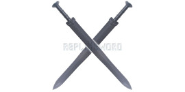 Magnifique ensemble de 2 épées "Orcrist" de Thorin tout en polypropylene tiré du film "Le Hobbit" Ultra résistante, absorbe les chocs, épée conçus pour des combats sans vous blesser. Tout en polypropylene ultra robuste. Longueur totale : 91cm Longueur de la lame : 74cm Poids : 410grs Ideal pour les cosplays, festival ou les entrainements.
