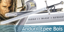 Magnifique réplique de " L'ANDURIL" ou "la flamme de l'ouest", portée par le roi Elessar dans la trilogie "Le seigneur des anneaux".Epée appartenant a Aragorn.La lame en acier stainless steel 440, pré-affutée mais non tranchante, est gravée d'écriture elfique au niveau de la gorge.Longueur de la lame: 89cmLongueur totale : 118cm Livré avec un presentoir...