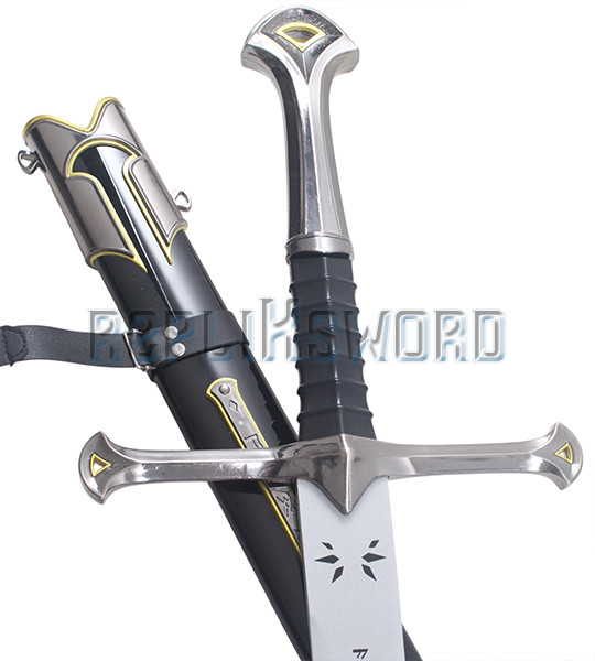 Superbe reproduction de l'épée Aragorn strider utilisé dans le film "le seigneur des anneaux" La lame en acier stainless steel 440, pré-affutée mais non tranchanteLe fourreau est en bois recouvert de simili cuir avec ornement en métal a chaque extrémité.Sublime pièce de collection.Longueur lame : 76 cmDimension totale : 104cmSuperbe piece de collection.