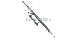 Magnifique reproduction de l' épée "Orcrist" de Thorin tiré du film "Le Hobbit" Lame en acier Stainless non affûtée gravée d'écritures elfiques.Garde en acier avec gravure.Longueur total : 100cm.Longueur de la lame : 75cmLivré avec son support mural en en bois richement décoré (37cm x 26cm)Magnifique piece de collection.