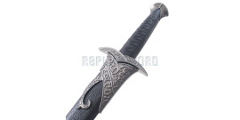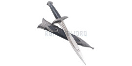 Superbe réplique de la dague qu'Aragorn a reçue des elfes dans le film "Le seigneur des anneaux"La lame en acier inox, pré-affutée mais non tranchante.Le manche est en ABS noir. Le pommeau ainsi que les ornements sur le fourreau sont en imitations métal argent.Le fourreau est en ABS noir.Très belle pièce de collection.Longueur totale : 40 cm Objet...