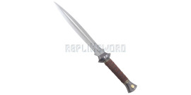 Magnifique réplique de la dague de Legolas tiré de la saga du Seigneur des Anneaux. La lame en acier 440 stainless est finement inscrit en écriture elfique, elle est pré-affutée mais non tranchante. Superbes finitions. Longueur totale : 57cm Longueur de la lame : 39cm Poids : 650grs Livré avec son fourreau avec ornement en acier.