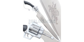 Lame en acier stainless 440 non tranchante avec gravure au laser des 2 cotés.