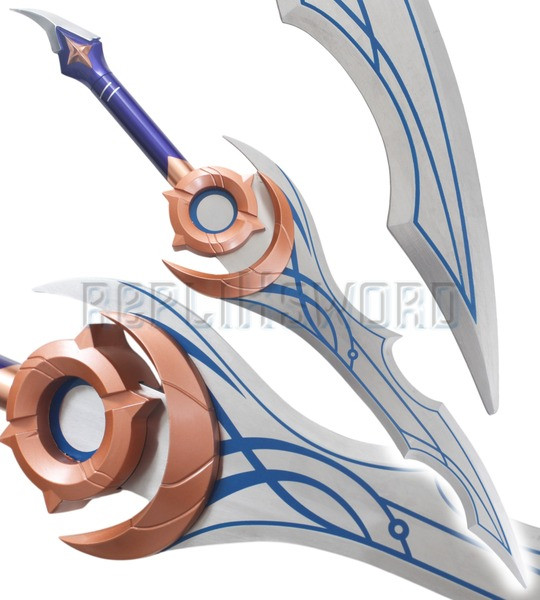 Cette réplique de la dague Moonshadow se distingue par sa silhouette fluide et son esthétique mystérieuse, évoquant la discrétion et la puissance du chasseur devenu monarque. Son style unique en fait une arme particulièrement appréciée des fans.